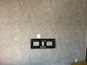 今回の住宅では、建築段階から壁掛けテレビを想定しており、テレビ設置予定箇所がふかし壁として施工されていました。