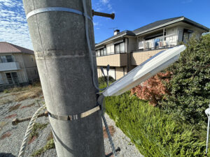 今回は川口市内の自治会さまよりご相談をいただき、町の電柱に設置されている防犯灯の取り替え工事を行いました。長年使用されてきた蛍光灯タイプの防犯灯が古くなり、点灯不良や暗さが目立つようになったことから、LED防犯灯への交換をご希望されていました。